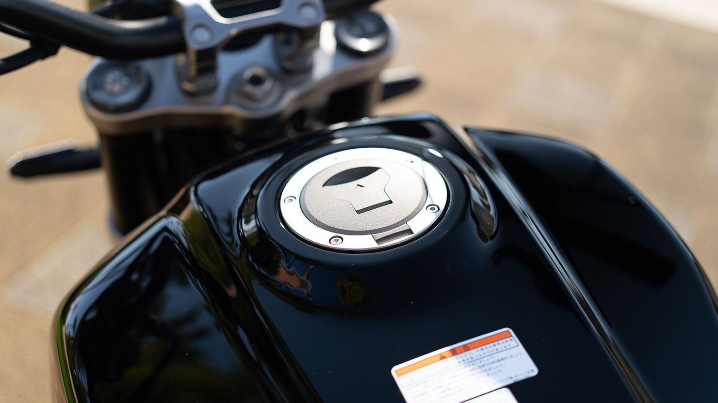 航続距離は約286km(17.9km/L × 16L)。やや短めで、Z900RSやCB400SFより航続距離は少ない部類です。スマートキーでありながら給油口は物理キーという“アナログ仕様”は少しユニークです。