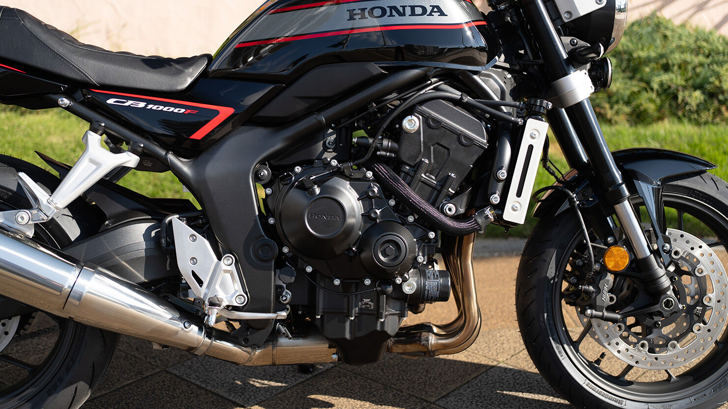 CB1000Fの大きな魅力のひとつが、官能的で刺激的な4気筒エンジンです。CB1300の重厚なスムーズさとも、CB400SFの超シルキーさとも、CB650Rの荒々しさとも違う独自のフィールを持っています。
