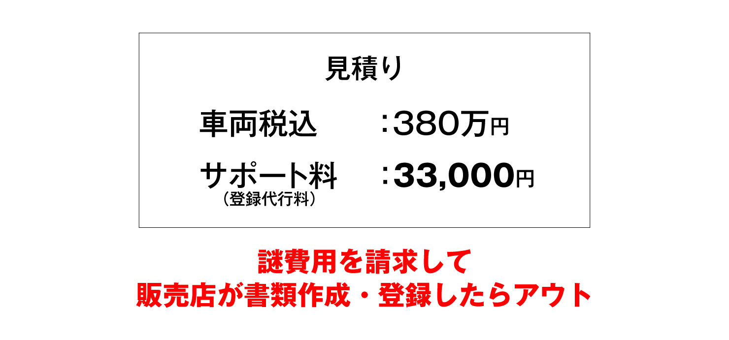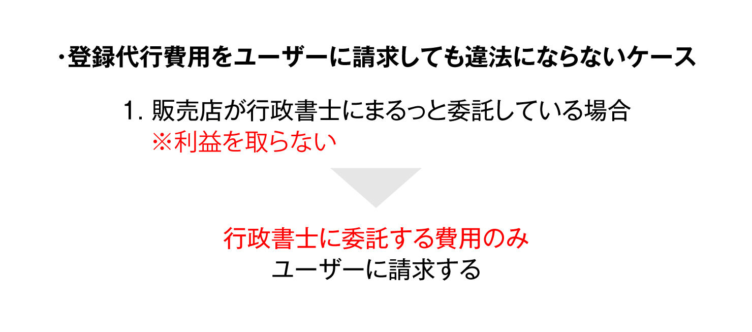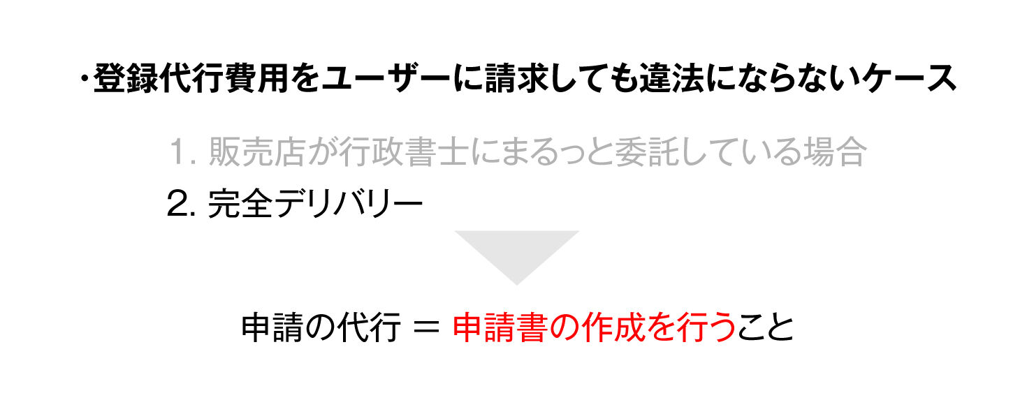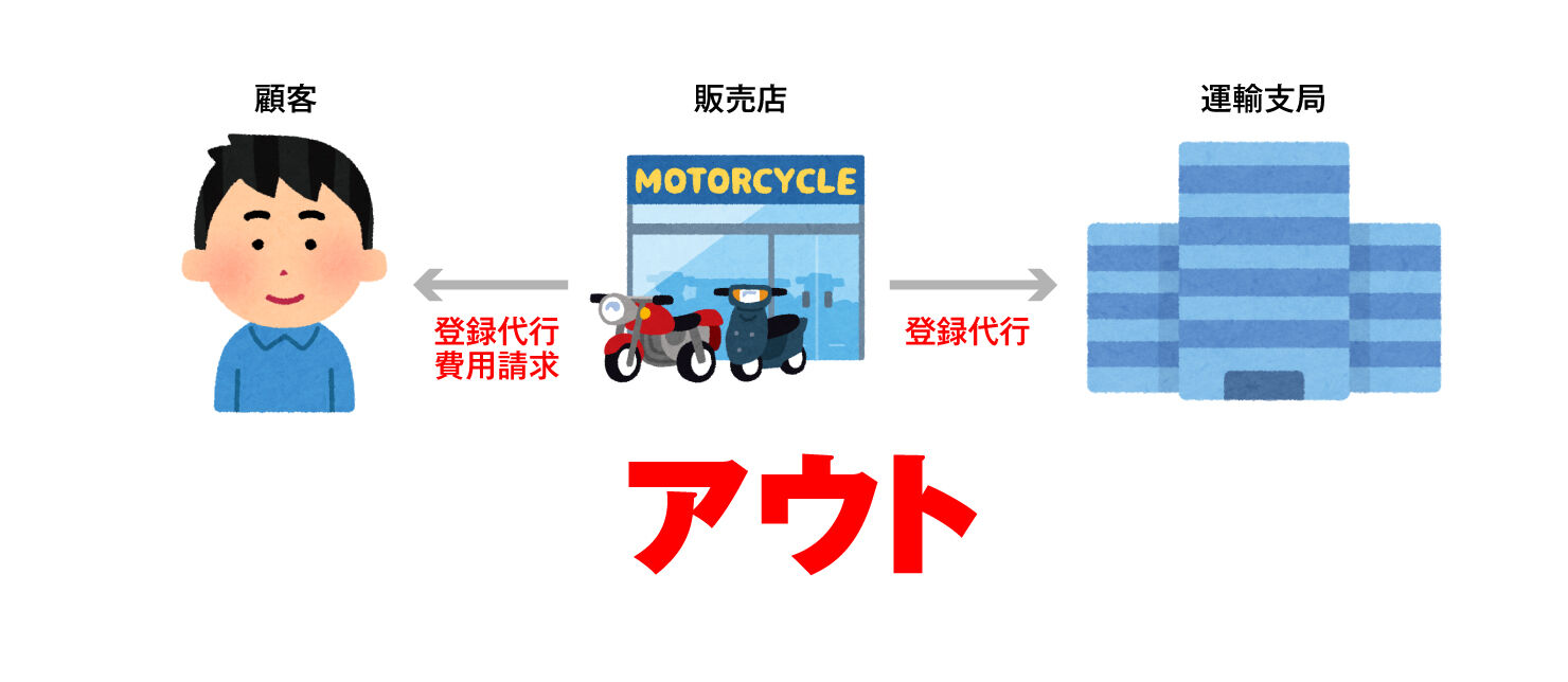 販売店が有償で登録業務を行う行為は、もともと違法でした。